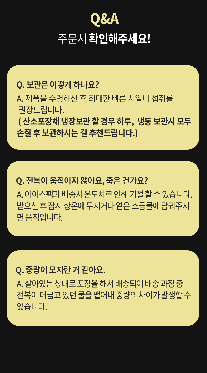 · 구매자가 배송지 주소를 잘못 기입한 경우, 반송/재발송 모두 택배비를 부담하셔야 합니다. (꼭 정확한 주소를 기입해 주세요)