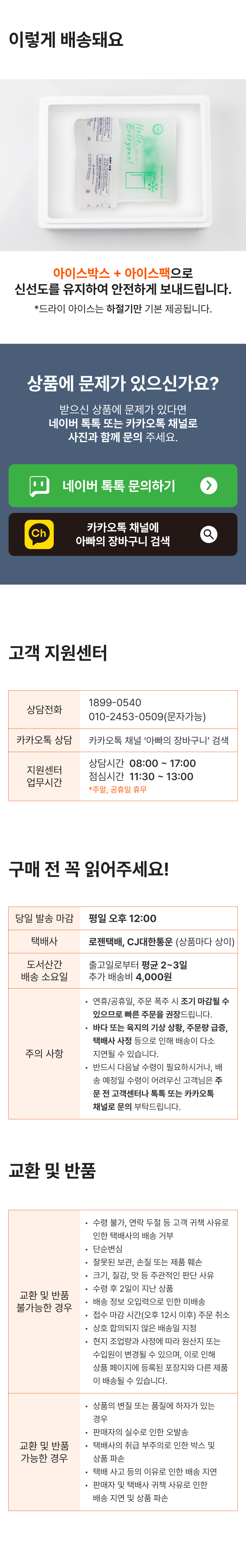 · 배송비 : 4,000원(2개 마다 기본배송비 반복 부과)